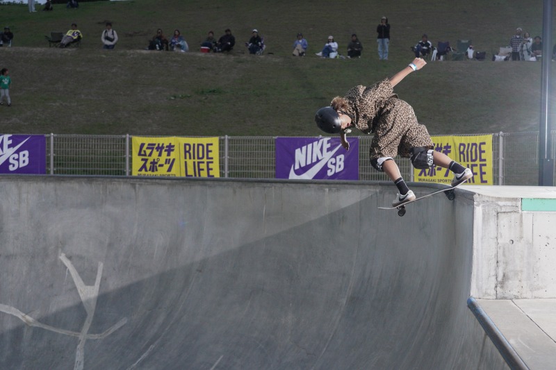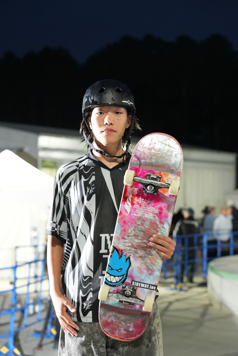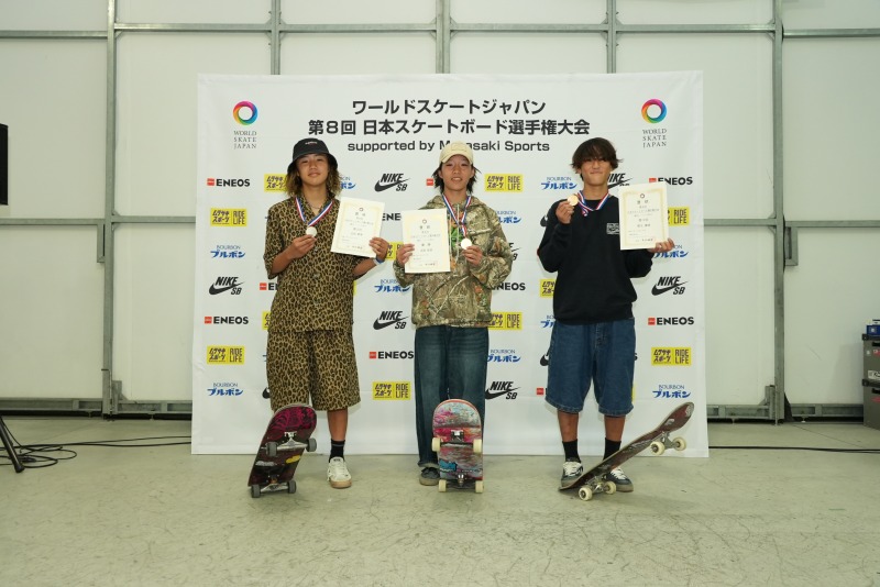 今年4月に行われた日本オープン王者の志治群青(14歳)が2位、前回大会(第7回日本スケートボード選手権)王者の猪又湊哉(16歳)が3位と続いた。
